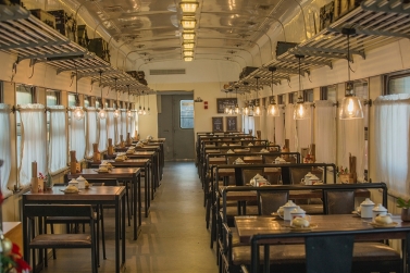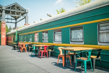 東方紅火車主題酒店由3列27節(jié)綠皮火車車廂組成,來自長春、沈陽等北方城市的綠皮火車經(jīng)過著名設(shè)計(jì)師的改造已經(jīng)成了國內(nèi)為數(shù)不多的火車主題酒店,一共73間火車客房和1個火車餐廳。酒店以橫鋼50年代金千鐵路舊址作為切入點(diǎn),利用火車枕木鋪設(shè)人行游步道,結(jié)合溫泉,形成了真正的VIP溫泉客房。走進(jìn)綠皮火車,你會發(fā)現(xiàn)原先的車廂已經(jīng)被很好地設(shè)計(jì)成了宜居的客房,書桌、衛(wèi)生間、電視、暖氣一應(yīng)俱全,還能在墻上看到年代感的背包/水壺/帽子的裝飾。