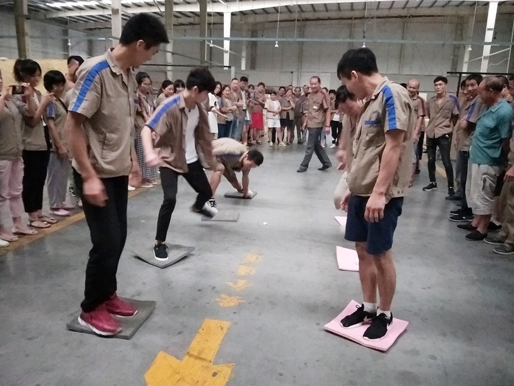 隨著一聲“比賽開始”的口令,大家熱情高漲,隊員們齊心協(xié)力,奮力拼搏,有些隊剛開始有點緊張,所走路線成彎曲狀,后來,在大家從旁提醒,順利到達終點。有些隊吸取經(jīng)驗,通過簡單的交流和溝通戰(zhàn)略技巧,比較順利。相比而言,后面的組明顯比前面的組速度快。在整個比賽過程中,里料車間團隊協(xié)作的能力和靈活的戰(zhàn)術(shù)配合比較好,本著“友誼第一、比賽第二”的精神,經(jīng)過激烈角逐,里料車間以2分25秒完成了60米“搭橋過河”獲比賽第一名,包裝車間獲得第二名,技術(shù)部獲得第三名。