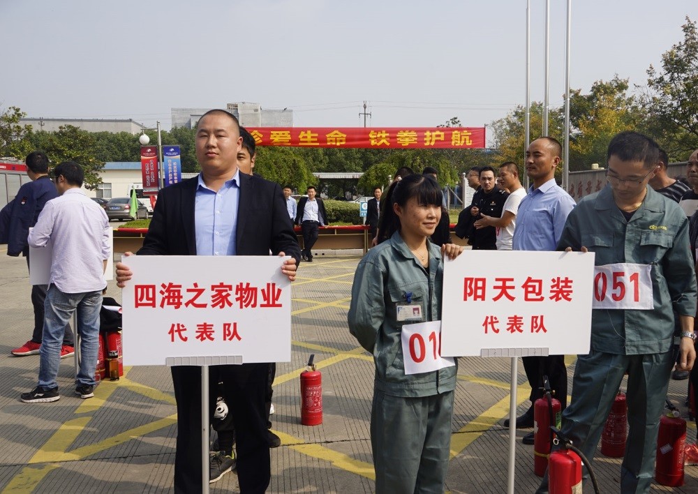 男子組50米干粉滅火器滅火和女子30米干粉滅火器滅火比賽中,選手們頭戴消防頭盔,手持滅火器以最快速度撲滅油盆油火。此項(xiàng)以檢驗(yàn)在日常生產(chǎn)中,員工對(duì)滅火器使用的掌握程度。