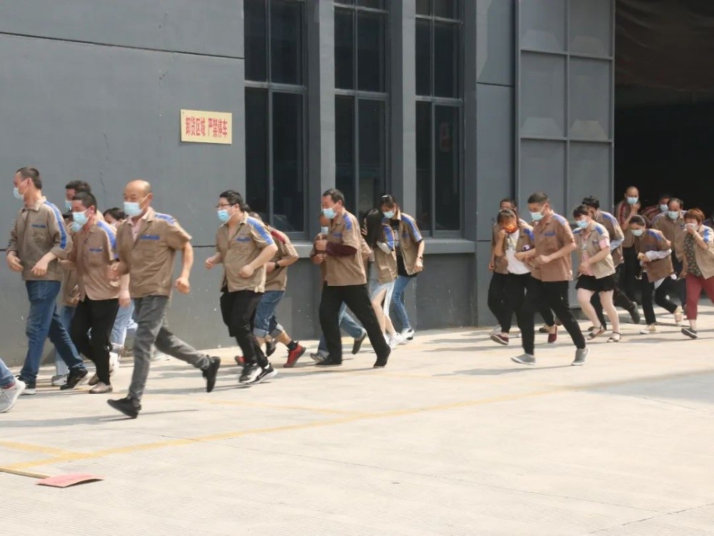 經(jīng)過(guò)周密安排,上午9時(shí),一陣急促的火警警報(bào)聲拉開(kāi)了“消防疏散演練”活動(dòng)的帷幕,聽(tīng)到警報(bào)聲,各車間主任立即到達(dá)指定崗位,指導(dǎo)員工快速疏散,員工們彎著腰、貓著步,捂住口鼻,沿著指定安全出口快速前進(jìn),有序安全撤離到廠區(qū)內(nèi)的緊急集合點(diǎn)。