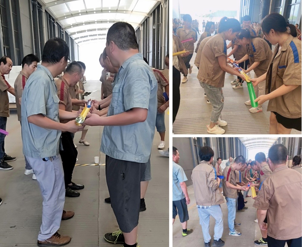 本次比賽共有10支隊(duì)伍參賽,100名員工報(bào)名參加。比賽前各部門(mén)負(fù)責(zé)人10個(gè)人組成的示范組,親切、耐心地為各組團(tuán)隊(duì)講解規(guī)則和傳授技巧,并以標(biāo)準(zhǔn)、準(zhǔn)確有力展示給大家。