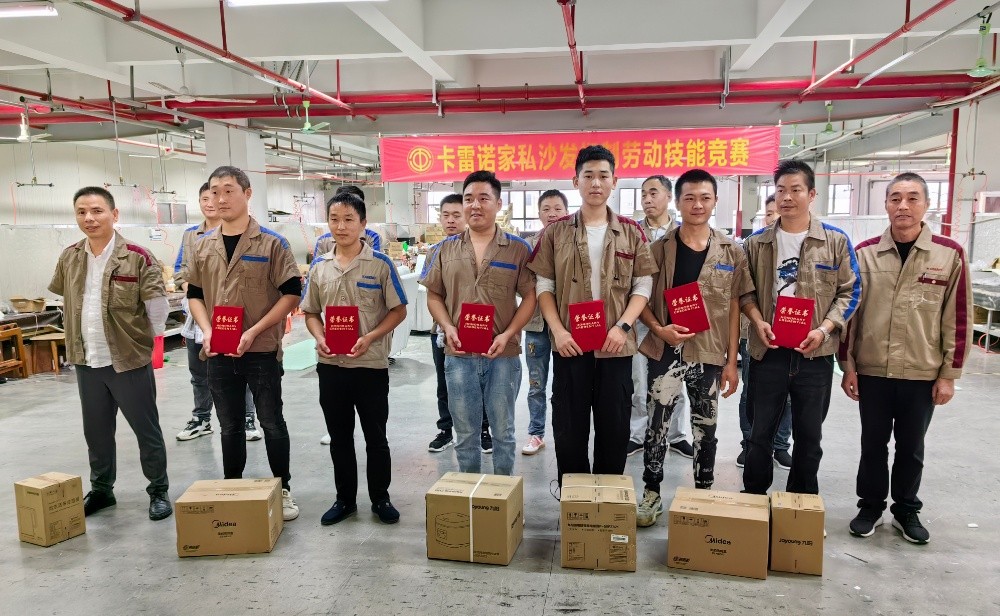為貫徹黨的二十大精神,在全社會弘揚勞動精神、奮斗精神、創(chuàng)造精神,進一步提高員工勞動技能,激發(fā)員工愛崗敬業(yè)熱情,10月28日下午,海寧卡雷諾家私有限公司組織開展了沙發(fā)捫制勞動技能競賽。