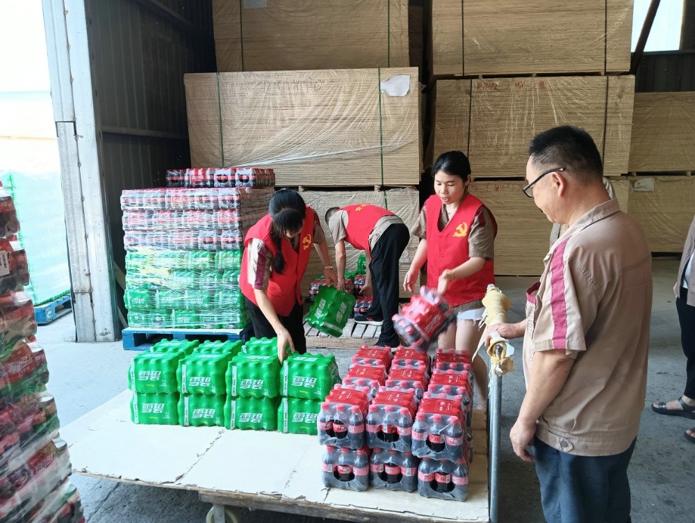7月12日恒森公司黨員們利用中午時(shí)間,將夏日福利——每人一箱可樂、一箱雪碧分發(fā)給員工。
