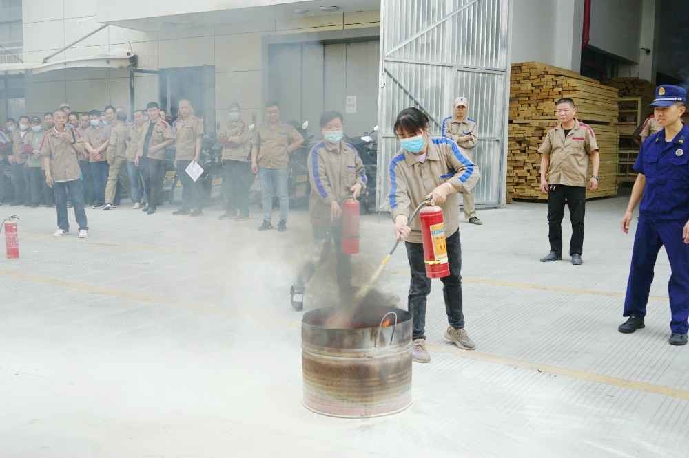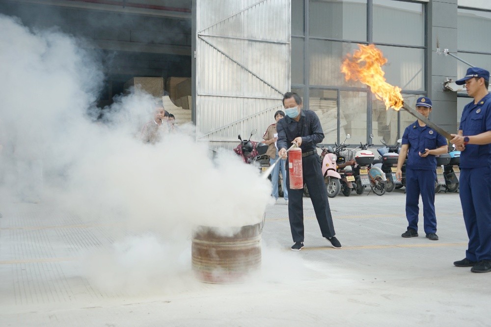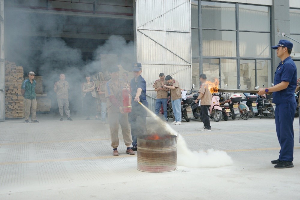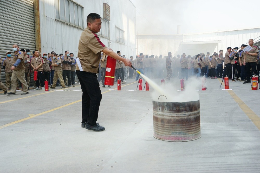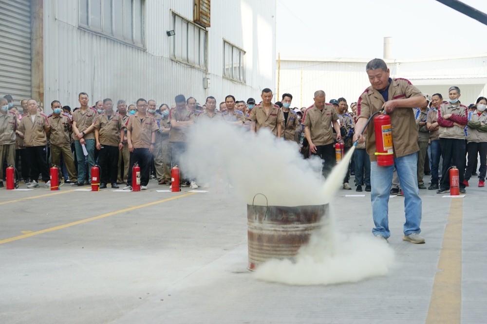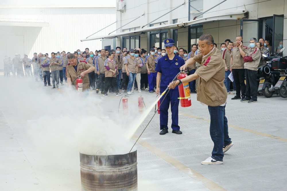 首先由車間主任、班組長等進(jìn)行操作示范,隨后由新員工們輪流使用滅火器訓(xùn)練,對不當(dāng)操作進(jìn)行現(xiàn)場糾正,力求使公司每位員工都能熟練掌握滅火技能。