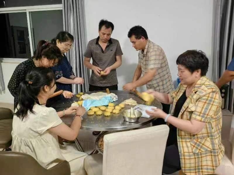 活動現(xiàn)場,大家熱情高漲,紛紛化身月餅師傅,熟練地揉面、加酥、調餡、壓制,分工明確,各展才藝,將對家人的相思揉進了月餅里。在一片片歡聲笑語中,一個個寓意團圓、美滿的月餅陸續(xù)成型。