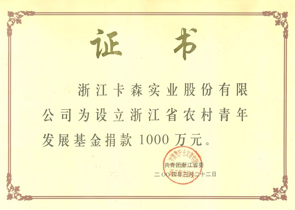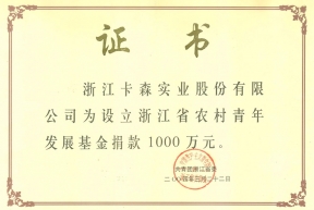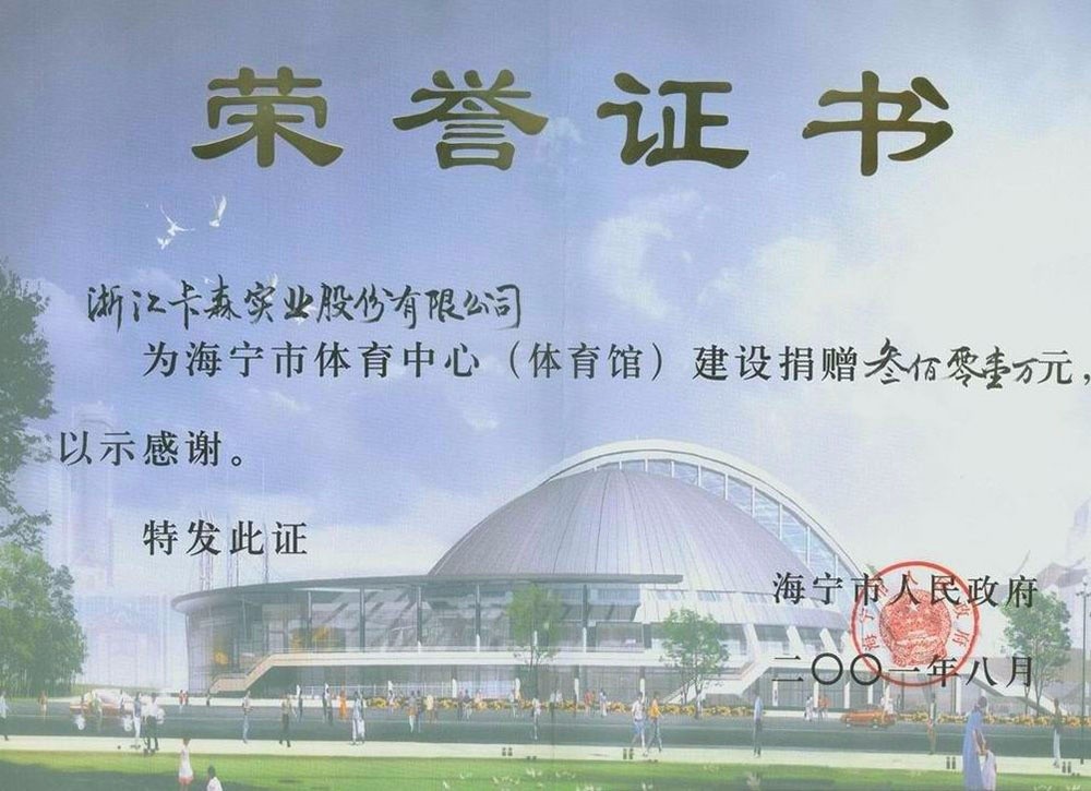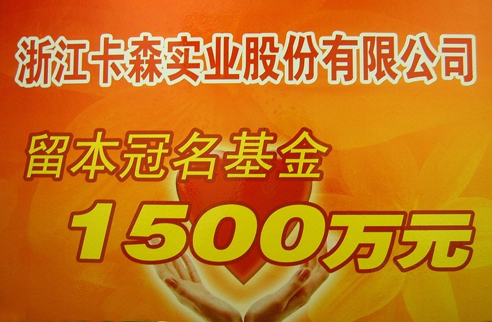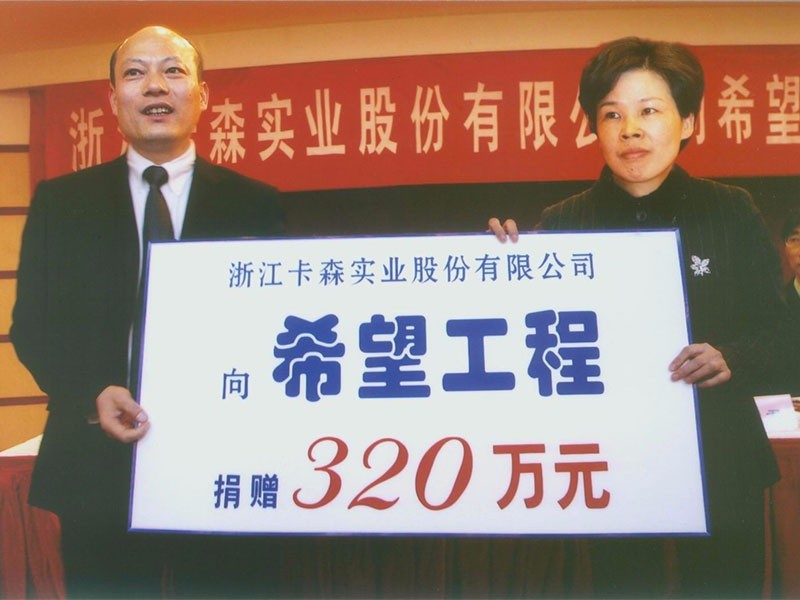 ▲ 2007年,海寧市創(chuàng)建慈善基金,集團(tuán)設(shè)立卡森留本冠名基金1500萬(wàn)元,至今累計(jì)捐贈(zèng)545萬(wàn)元,用于助困、助學(xué)、助教、助殘;