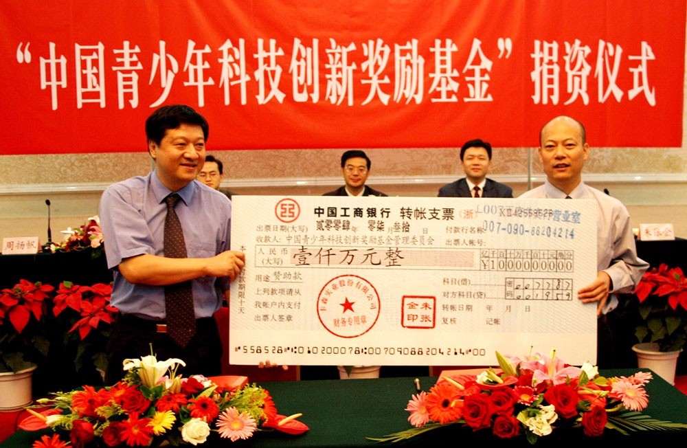 ▲ 2004年,向根據(jù)鄧小平同志遺愿設(shè)立的“中國(guó)青少年科技創(chuàng)新獎(jiǎng)勵(lì)基金”捐贈(zèng)1000萬(wàn)元;